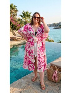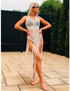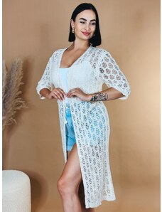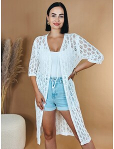 MARKO COLLECTION Biela plážová tunika na plavky s háčkovaným topom Ines Bianco M-387 (2)