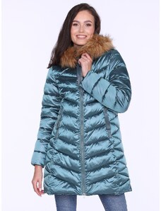 Perso Smaragdová dámska ležérna zimná bunda s kožúškom BLH 220036 FF - emerald