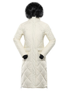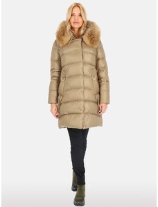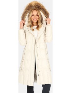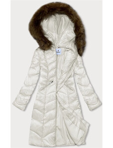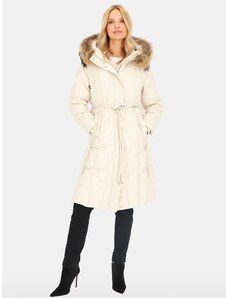 Perso Smotanový dámsky prešívaný kabát s prírodnou kožušinou BLH 241005 FR -beige