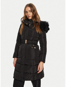 Perso Čierny dámsky páperový prešívaný kabát s pásikom BLH 241012 FXR - black
