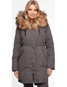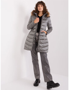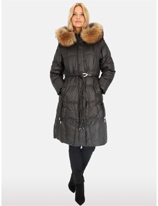 Perso Tmavosivý dámsky páperový prešívaný kabát s kožušinou na kapucni BLH 220027 FXR - dark grey