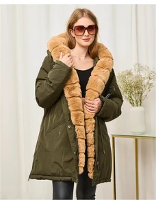 Perso Dámska khaki obojstranná parka s kapucňou BLH 919079 F - khaki