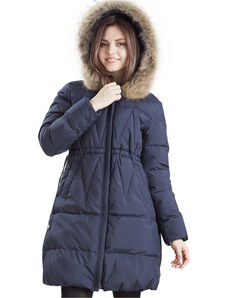 Perso Tmavomodrá dámska prešívaná bunda s kožušinou BLH 201039 F - dark blue