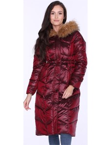 Perso Červený dámsky dlhý zimný prešívaný kabát BLH 818025 FF - Red
