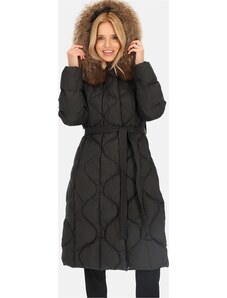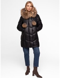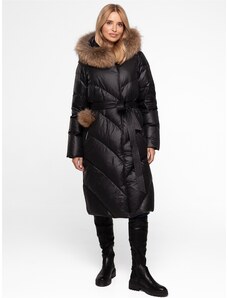 Perso Čierna dámska prešívaná páperová bunda s prírodnou kožušinou BLH 241062 FXR - black