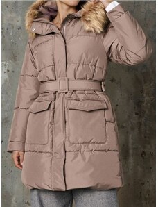 BASIC Tmavobéžová dámska zimná prešívaná bunda CITYGLANCE s ozdobnou kožušinou TY5046