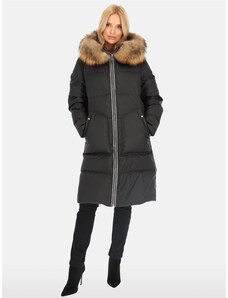 Perso Čierna dámska páperová bunda s prírodnou kožušinou BLH 252519 FXR - black