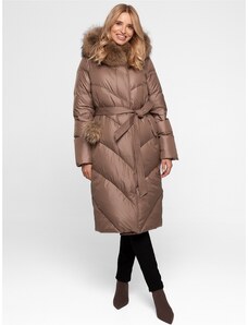 Perso Hnedý dámsky prešívaný páperový kabát s brmbolcom na vrecku BLH 251050 FXR - brown