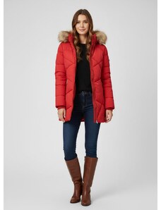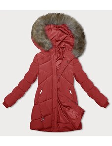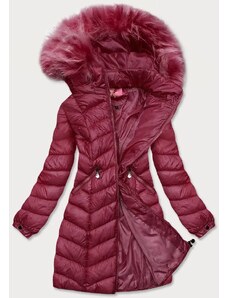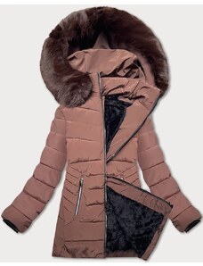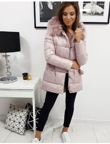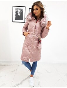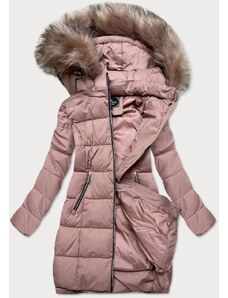 Perso Pastelovo ružová dámska dlhá zimná bunda s kožušinou na kapucni BLH 220011 FF - pink