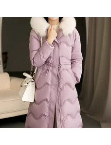 Best Fashion Dámský dlouhý péřový kabát s odepínacím límcem z liščí kožešiny