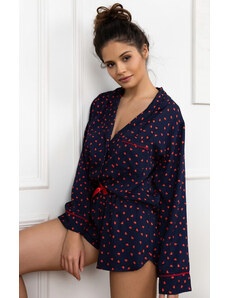 Sensis Luxusné pyžamo na gombíky krátke so srdiečkami Maisie, Farba tmavomodrá