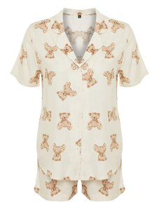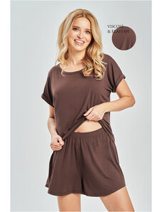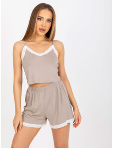 RUE PARIS Tmavobéžové krátke pyžamo RV-KMPL-7993.11-dark beige