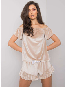 RUE PARIS Béžové dámske krátke velúrové pyžamo RV-PI-7395.40-beige