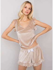 RUE PARIS Béžové velúrové krátke pyžamo s volánikmi RV-PI-7396.30X-beige