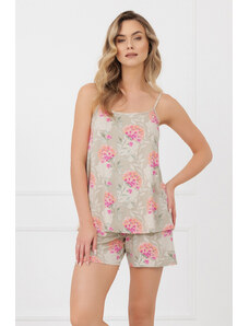 Donna Elegantné dámske pyžamo krátke na ramienka Paloma, Farba olivová