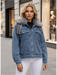 Dámska džínsová bunda FURDENIM s kožušinou svetlo modrá FashionStreet TY4755z