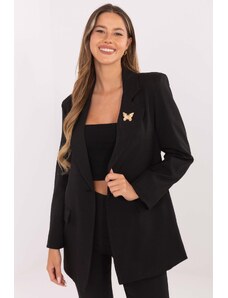 MladaModa Elegantné sako s brošňou a zapínaním na gombík model 31585 čierne