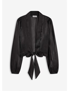 Bonprix Bolero z jemného tylu s detailom na zaviazanie, farba čierna