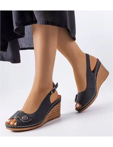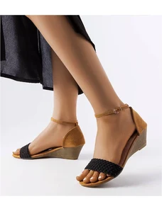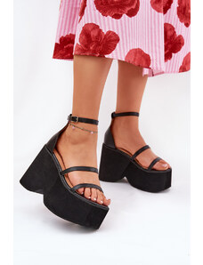 Boto Sandały Na Koturnie Z Paseczkami Czarne Ellen