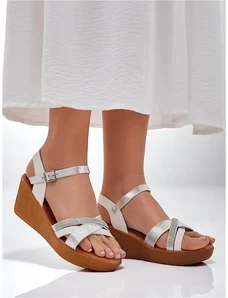 Dámske sandále na masívnom podpätku a platforme Biele Vinceza 17387