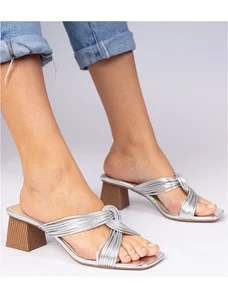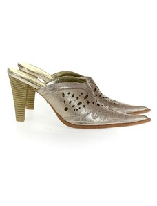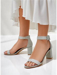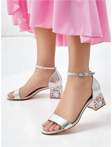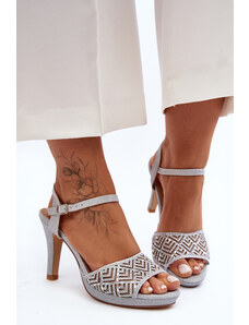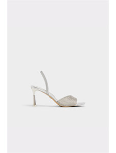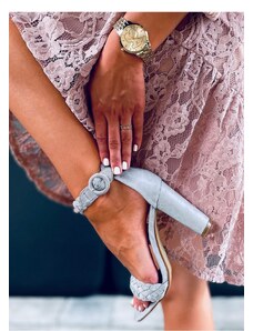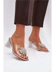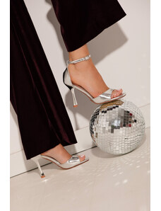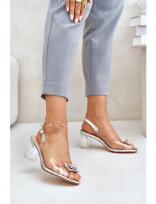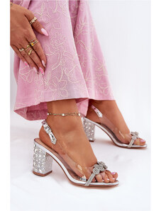 S. BARSKI Transparent sandals with a brooch on a heel D&A silver