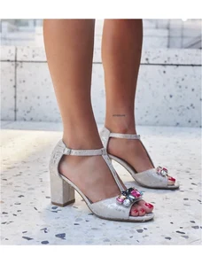 Boto Dámske sandále na blokovom podpätku s remienkami a kamienkami