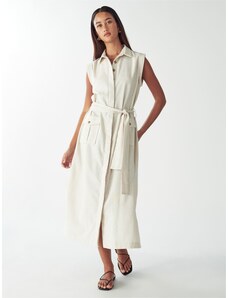 Trendyol Curve Beige Double Breasted Woven Jacket Linen Blend Dress