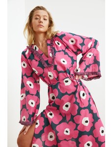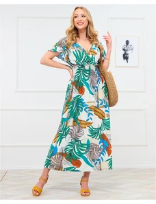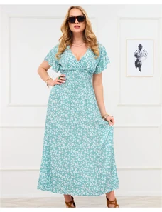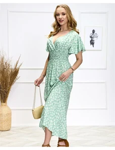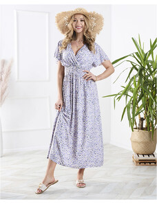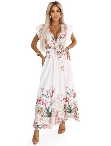 Numoco basic 603-4 Airy wrap maxi dress with floral pattern – pink roses