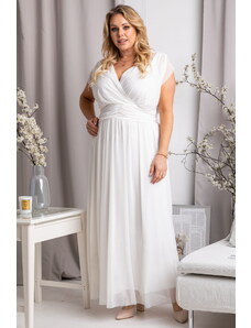 Numoco basic 541-1 CELESTINA Elegant tulle dress with a neckline and bow - white