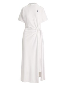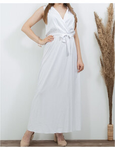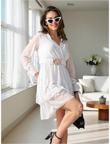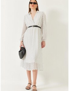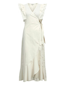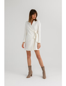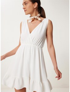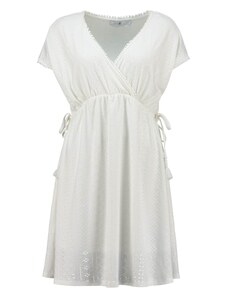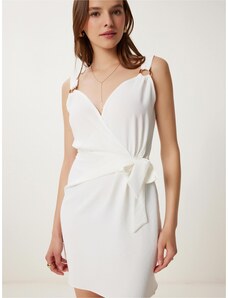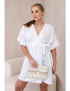K-Fashion Dámske zavinovacie šaty s volánom a ozdobnou sponou biele