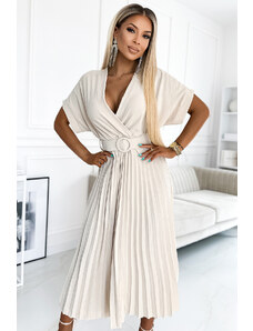 NUMOCO Plisované béžové midi šaty so širokým pásikom FELICIA 471-1