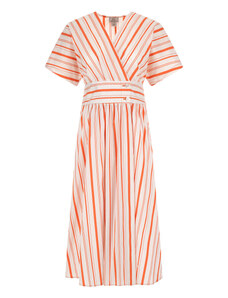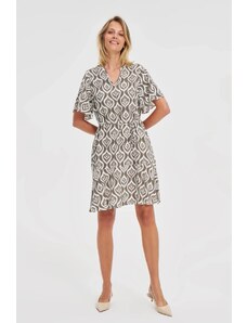 Resti Patterned women's midi dress with short sleeves, wrap neckline, and belt