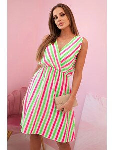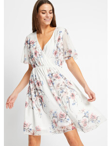 Numoco basic 468-1 PATRIZIA šaty s obálkovým výstrihom, opaskom a krátkymi rukávmi - BIELE V RUŽOVEJ