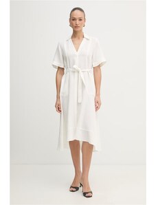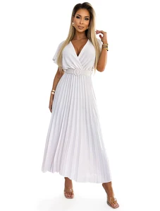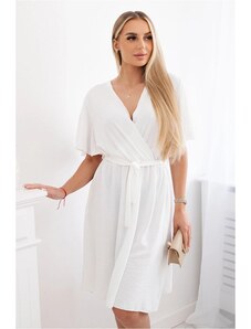 Numoco basic 585-1 Plisované letné midi šaty so širokým opaskom - ECRU