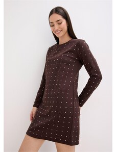 Bonprix Úpletové šaty s bodkami, farba hnedá