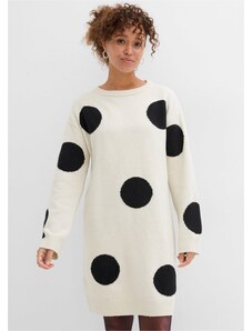 Bonprix Pletené šaty, oversize, s bodkami, farba béžová