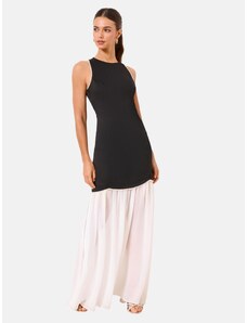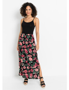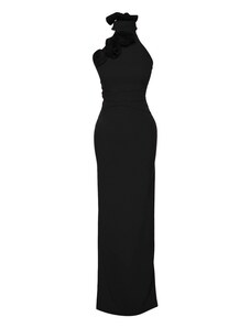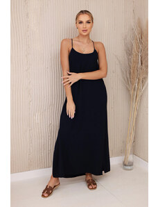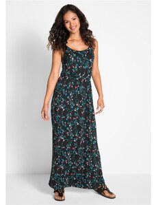 BASIC Čierne kvetované dámske maxi šaty na ramienka MISSBLOSSY EY2621