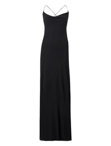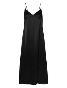 Numoco DIANE saténové dlhé šaty s rozparkom na nohaviciach - čierne 483-7