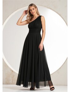 FIGL Čierne dámske dlhé šaty so širokým ramienkom M1172 Black