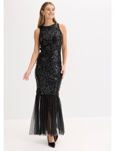 Numoco CHIARA elegantné maxi šaty na ramienka - čierna s trblietkami 299-18