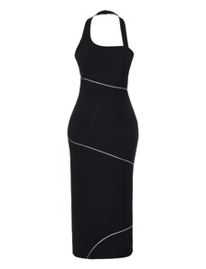 Bonprix Midi šaty zo štruktúrovaného džerseju, výstrih na chrbte, farba čierna