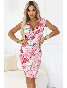 NUMOCO Ružové asymetrické šaty s výstrihom a pásikom MAYA 478-2