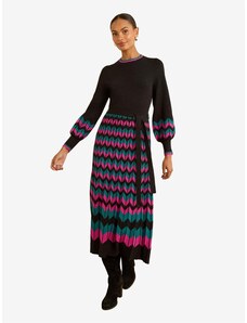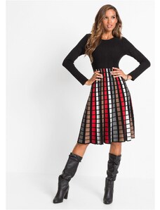 Bonprix Pletené žakárové šaty s modernými pásikmi, farba čierna