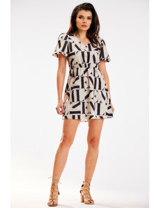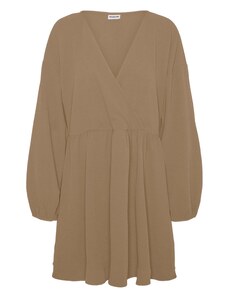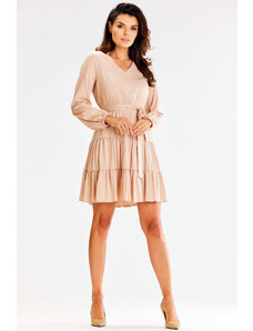 NUMOCO 387-6 Fitted dress with an envelope neckline and long sleeves - beige colour