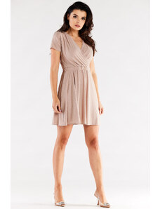 RUE PARIS Béžové velúrové koktailky so zavinovacím výstrihom -RP-SK-8157.07-beige