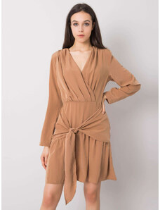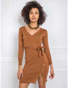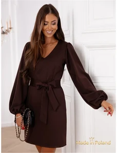 BASIC Hnedé dámske šaty s výstrihom a viazaním EM-SK-PL3965.14P-brown
