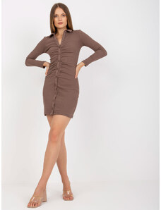 RUE PARIS Tmavobéžové priliehavé šaty s gombíkmi RV-SK-8014.08-dark beige