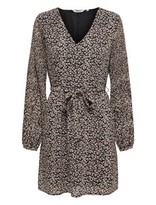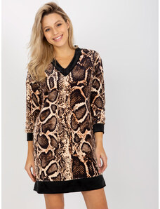 RUE PARIS Čierno-hnedé mini šaty so zvieracím vzorom RP-TU-8189-4.09-black-beige