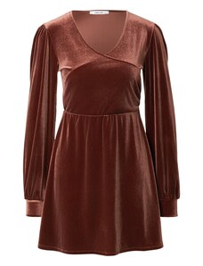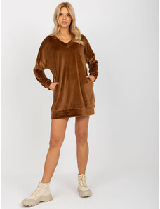 RUE PARIS Hnedé voľné velúrové šaty s vreckami -RP-TU-8189.94-brown