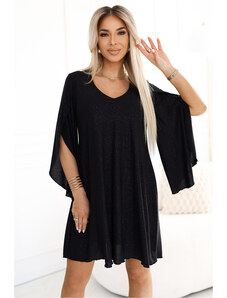 Numoco LIVIA Elegantné trapézové šaty s motýlikovými rukávmi - čierne s trblietkami 597-1